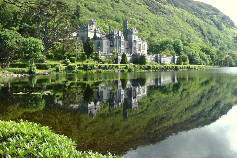 Connemara Park Narodowy. Krajobraz tutaj jest zdominowany przez granitowe góry, wrzosowiska, tereny bagienne i liczne jeziora. Nad pięknym jeziorem Kylemore Lough zwiedzam Opactwo Kylemore. Dawna neogotycka posiadłość kupca, który wybudował sobie tutaj rozległa posiadłość z wiktoriańskim ogrodem, którą ocenia się za jedno z najbardziej romantycznych miejsc w Irlandii. Obecnie teren jest w posiadaniu zakonu benedyktynek, które prowadzą tu ekskluzywną szkołę żeńską. Zwiedziłem część budynku oraz kosciółek w pobliżu.