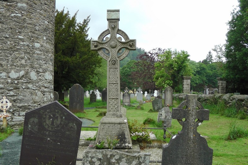 Dzień siódmy objazdu Irlandii zaprowadził mnie do Doliny Glendalough w Górach Wicklow. Zwiedziłem dawna siedzibę pustelnika św. Kevina, który w VI w. n.e. mieszkał tutaj i swoją postawa spowodował powstanie klasztoru, w którym z czasem zamieszkało 1000 mnichów. Obecnie to tylko ruiny wioski mnichów z wieżą dzwonnicy i starym cmentarzem. Sama pustelnia św. Kevina jest położona pomiędzy dwoma jeziorami w obecnym Parku Narodowym Gór Wicklow.