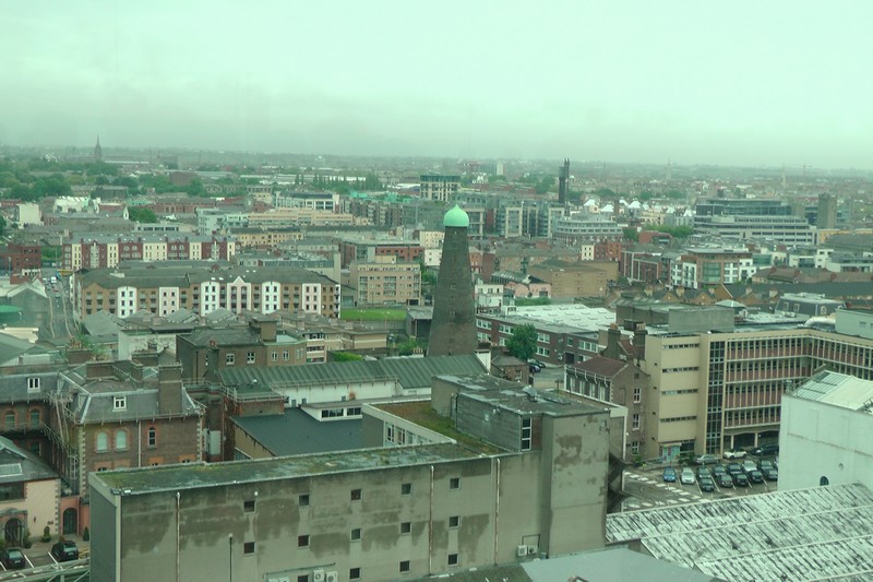 Browar Guiness. Za nieco słona opłatą (10,5 Eur) pokazano mi 8 kondygnacji muzealnego budynku browaru. W oględny sposób informuja jak z jęczmienia, słodu, chmielu i wody wyprodukować tę czarną irlandzką specjalność narodową. Krótkie mało ciekawe zwiedzanie, kończy się degustacją piwa na ostatniej kondygnacji, z ładną panorama miasta.