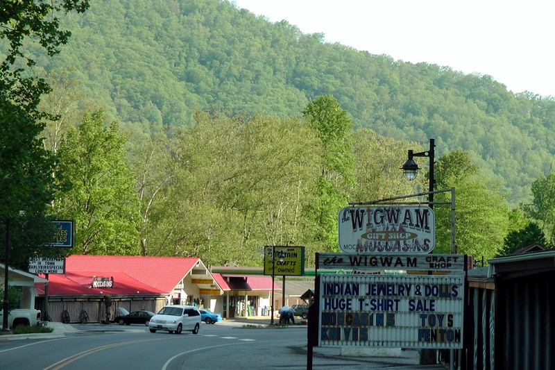 Zjechaliśmy z gór wysokich do indiańskiego miasteczka Cherokee. Sporo sklepików i małych hoteli.