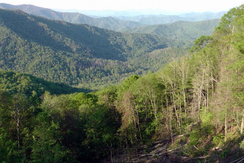 oraz wszedłem na najwyższy szczyt Clingmans Dome (2024 m. n.p.m.). Na szczycie zbudowano wieżę obserwacyjną z której widok pokazuje te Smoke Góry. Przez łańcuch górski przebiega także granica ze stanem Karolina Płn. Dalsza podróż już w Karolinie.