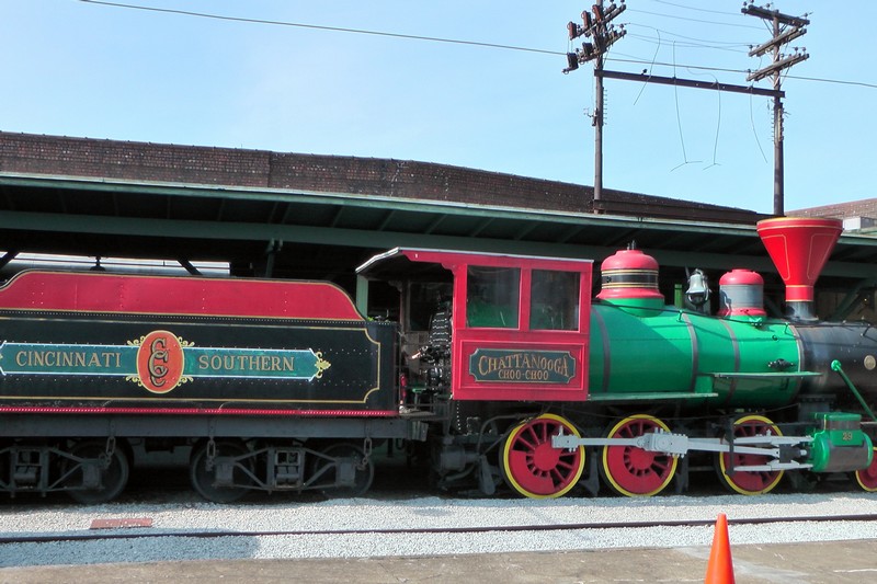 Od rana wędruję po Chattanooga. Zacząłem oczywiście od słynnej lokomotywy „Chattanooga Cho-Cho”. Ta stara lokomotywa kolei Soutern Cinncinatti stoi obecnie w centrum miasta, oczywiście na torze, i oczywiście przy peronie na stacji, ale… stacja jest obecnie Hotelem Hooliday Inn, który oferuje noclegi również w wagonach kolejowych.