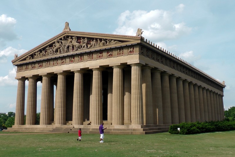 Po 2 godzinach na autostradzie międzystanowej 24 jesteśmy w stolicy stanu, Nashville. Miasto to lepiej jest znane jako stolica country, i przemysłu nagraniowego. Pierwszym zwiedzonym miejscem był park z pełnowymiarowa kopią Parthenonu. Ta grecka świątynia była ozdobą była ozdobą wystawy w 1897r., i miasto postanowiło ja wybudować w 1931 r. Wewnątrz znajduje się 13 metrowy pozłocony posąg bogini Ateny Partenos.