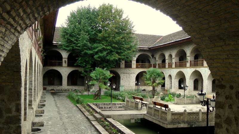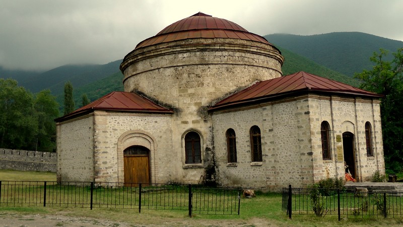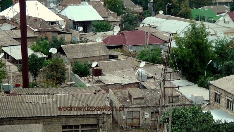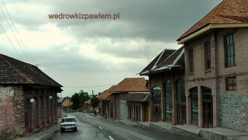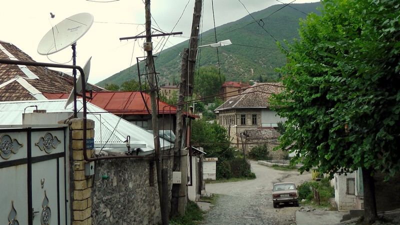 Zwiedzam te miasta Azerbejdżanu podczas długiej podróży, która nazwałem: „Zakaukazie i okoliczny Jedwabny Szlak”, we wrześniu 2012 r. Wcześniejszą relację znajdziesz tutaj: „U potomków Noego w Xinaliq (Hynalek)”. Przemieszczałem się autobusami. Komunikacja autobusami jest sprawna i stosunkowo tania. Wyjechałem z głównego dworca autobusowego Baku rano ok.8.10, i po 4,5 godz. byłem 306 m dalej w Seki (ang. Sheki). Pytam o hotele: zdecydowałem się na najtańszy „Domasznij” za 10 M/noc/ łóżko +2 M taxi pod górkę, w starej części miasta koło głównych zabytków. Trafiłem do prywatnego hoteliku robotniczego. Warunki: byle jakie, ciasno, łóżka bez pościeli. Lepiej było spać w mijanym nieco bliżej obok Hotelu Karawanseraj (za 30 lub 50 M/pokój 2 os.). Jedna noc nie chce mi się iść 300 m. Zostawiłem plecak i idę na spacer dookoła. Nieco w bok i pod górkę główne zabytki, w tym Pałac Szekińskich Chanów z XVIII wieku. Miasto o 2600 letniej historii dawniej było niżej w kotlinie, ale po wielkiej powodzi przeniesiono wszystko w górę, gdzie teraz można zobaczyć wyremontowane główne zabytki. Sheki znane było z produkcji jedwabiu, handlu wyrobami jubilerskimi oraz bronią. Kupcy z jedwabnego Szlaku kupowali te towary w 5 karawanserajach, które istniały jeszcze w XVII- XIX wieku. Zwiedzanie rozpocząłem od zespołu zabytku obok Pałacu. Na głównej ulicy wyremontowano fronty budynków i dachy, resztę pozostawiając właścicielom budynków. Okoliczne domy i mieszkania podobne jak na załączonym zdjęciu.