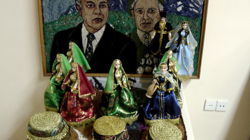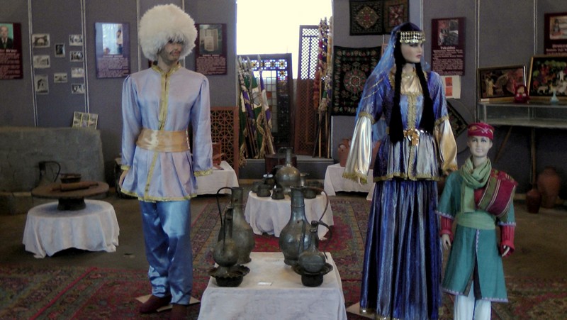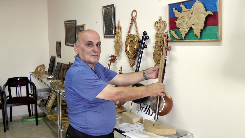 Obok pałacu jeszcze jedno Muzeum: Etnograficzne (niezbyt interesujące), oraz wystawa rzemiosła artystycznego połączona ze sprzedażą. Bardzo miły gospodarz Musajew Ali Achmed oprowadził mnie i z dumą pokazał różne wyroby. Nauczył mnie rozróżniać oryginalne azerbejdżański instrumenty muzyczne: Tar (duzy podobny nieco do gitary), Kamanca (Czamancza- rodzaj skrzypiec), oraz odmianę tamburynu.