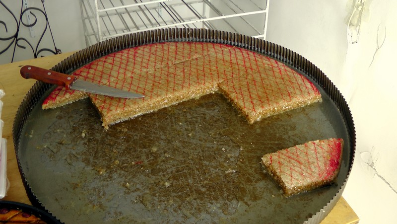 Nieco niżej stronę miasta obecnie są jeszcze dwa Karawanseraje: Górny i Dolny. Dawniejsze 3 kondygnacyjne obiekty handlowe: na dole magazyn, wyżej miejsce handlowe i u góry pomieszczenia mieszkalne. Były ogromne. Górny o pow. 9 tysięcy metrów kw. Jest w/w Hotelem Karawanseraj-bardzo ciekawe miejsce do spania. Dolny jest remontowany. Specjalnością Sheki jest też ociekająca miodem chałwa i pahlawa. Ta druga przypomina ciasto z miodem i dużą ilością orzechów. Załączam zdjęcia dziedzińca karawanseraju i placek chałwy.