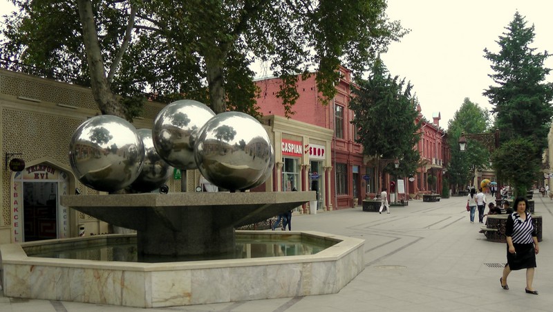 W centrum miasta plac centralny i Meczet Dżuma (piątkowy). Obok meczetu Szkoła Koraniczna (tzw. Medresa lub Madrasa), w której obecnie studiuje przez okres 3 lat 25 uczniów. W uliczce spotkałem starca siedzącego przy froncie niskiego budyneczku na którym buło kilkadziesiąt zdjęć typu cmentarnego. Zaciekawiony spytałem i okazało się, że to fotografie , będących w różnym wieku, byłych mieszkańców tej części miasta , ofiar ataku czołgów Nagornego Karabachu, na Baku w dniu 22 stycznia 1992r. Zrozumiałem dlaczego w Baku jedna ze stacji metra nosi nazwę „22 Stycznia”.