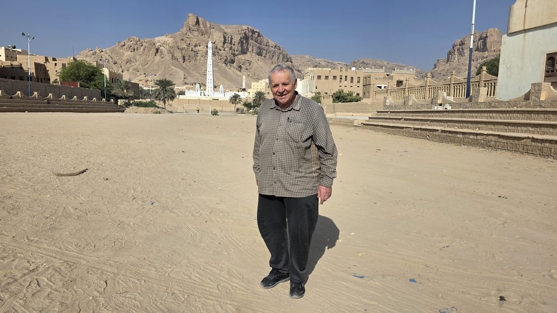Wadi Hadramwat jest znacznie szersza. Pojawia się zielona roślinność i pola uprawne. Jedziemy obecnie na wschód i pierwszy stop zrobiliśmy w Tarim.