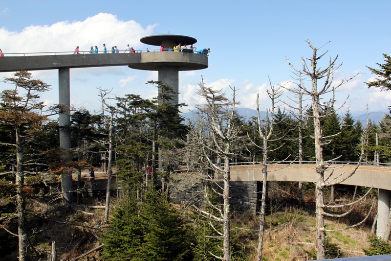 oraz wszedłem na najwyższy szczyt Clingmans Dome (2024 m. n.p.m.). Na szczycie zbudowano wieżę obserwacyjną z której widok pokazuje te Smoke Góry. Przez łańcuch górski przebiega także granica ze stanem Karolina Płn. Dalsza podróż już w Karolinie.