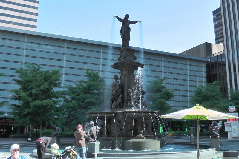 W downtown ładny jest plac z fontanną (Fountain Squaer), otoczony wysokimi wieżowcami, między innymi Carew Tower.