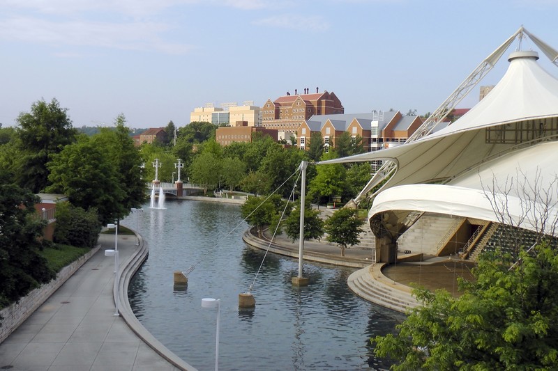 W centrum nieco wieżowców i tzw kryształowy most, ogród botaniczny w ładnym otoczeniu. Obok spacer w Bricktown z łodziami na kanale rzecznym.