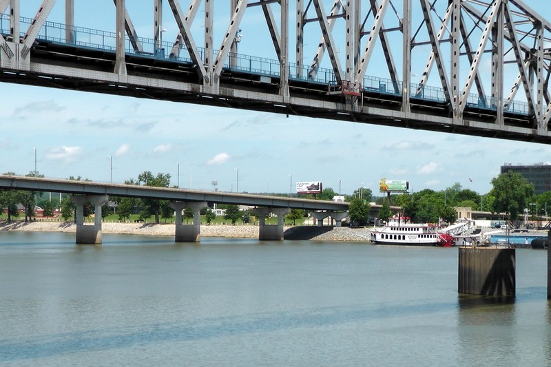 Stan Kentucky.O godzinie 11-tej przejeżdżamy przez most nad Ohio i jesteśmy w stanie Kentucky (rzeka jest granicą). Autostradą 75 (póżniej 64 na zachód), znikamy między pagórkami coraz większymi w stronę stolicy tego stanu niewielkiego miasta Frankfort. Nie mylić z Frankfurtem w Niemczech. Cały stan ma populację nieco ponad 4 miliony. Większymi miastami od stolicy są: Lexington- Fayette, oraz Louisville. W stolicy przeważa zabudowa niska z kolorowymi budynkami sprzed wieku. Przez środek starego miasta wiedzie linia kolejowa. Miasto także położone jest wokół zakoli rzeki tutaj jest to rzeka Kentucky.