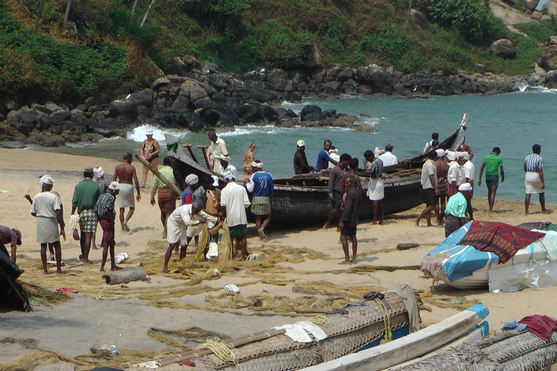 Dalszy spacer i po ok. kilometrze drogą przybrzeżną, z kilkoma hotelami, jeszcze jedna plaża. Tutaj także rybacy, układający sieci i przygotowujący się do kolejnej nocy na Oceanie Indyjskim, a w zasadzie już na Morzu Arabskim. Obowiązuje także nazwa Morze Lakshadweep (Lakkadiwskie). Różnica niewielka, tylko w nazwie ponieważ niebezpieczeństwa, i duże fale oceaniczne, są takie same .