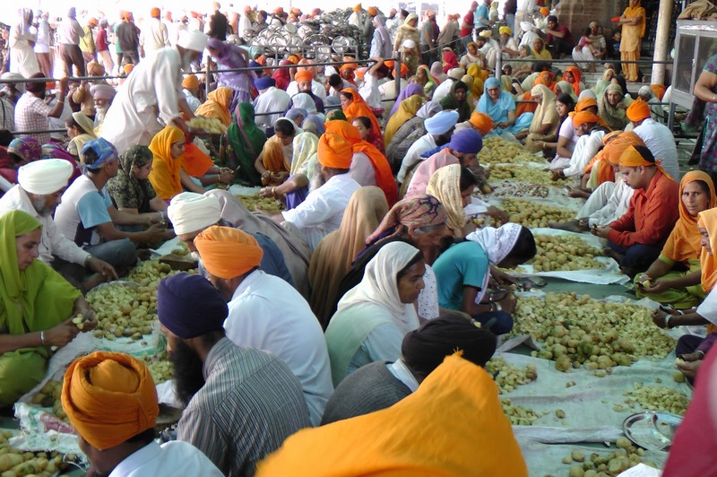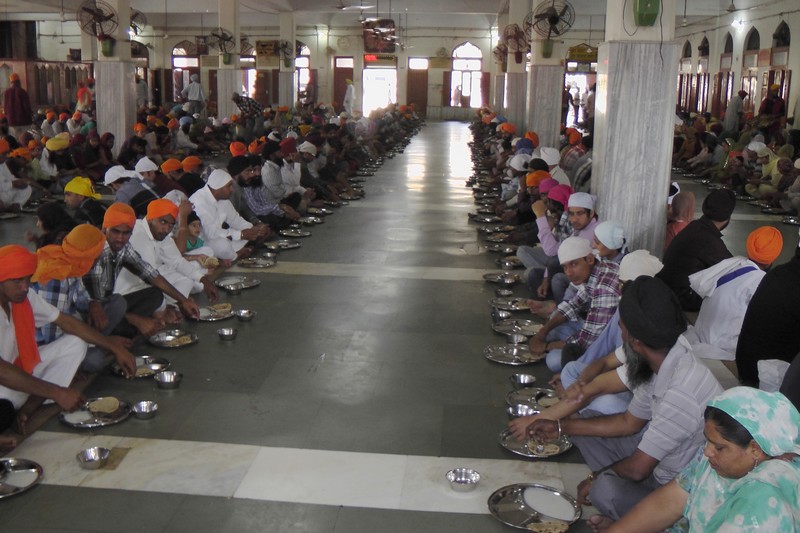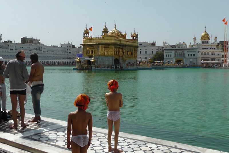 Rikszą rowerową jedziemy do Złotej Świątyni, zwanej także Harimandir Sahib (w języku pendżabskim). Po wejściu jesteśmy nakarmieni hinduskim potrawami (głównie dal i ciapaty). Wokół niesamowita atmosfera i obserwowanie tej ogromnej operacji, karmienia codziennie 18 tysięcy wiernych.