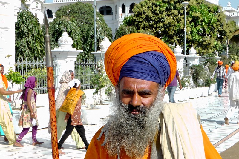 Spacer dookoła świętego jeziora, na środku którego złoci się główna świątynia . Jesteśmy jedynymi białymi turystami. Sikhowie piją świętą wodę, dokonują w niej rytualnego mycia się. Późnym popołudniem ustawiają się w łańcuszek, i wodą z jeziora myją świątynię. Wczesnym rankiem ok.4.00 i wieczorem ok.21.30, święte księgi czytane w ciągu dnia, są uroczyście przenoszone do świątyni. Sikhowie są bardzo przyjaźni, i z zainteresowaniem nas obserwują. Wracamy z powrotem wieczorem- piękna iluminacja całego terenu, i uroczystość wieczornej modlitwy. Miasto zaniedbane, a patrząc na historyczne frontony budynków w uliczkach wokół, chyba pamiętające lepsze czasy .