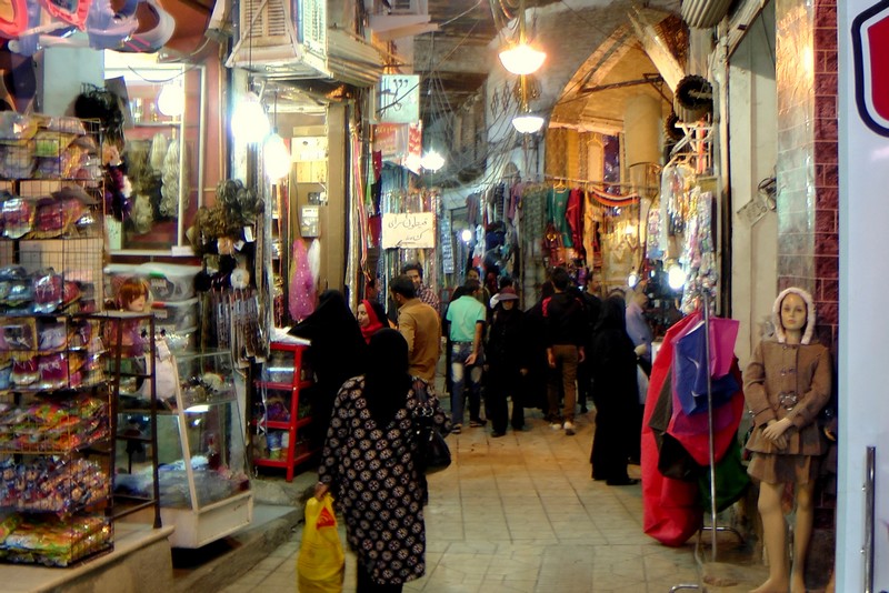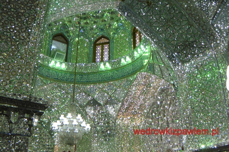 Następnie tuptam kilka minut do tutejszego miejsca świętego Mauzoleum Mira Sajjeda Ahmada. Był bratem Imama Rezy z Meszhedu. Z zewnątrz niepozorne zwłaszcza wobec prowadzonych przed nim potężnych robót budowlanych. W depozycie musiałem zostawić plecaczek z kamerą foto. Wszedłem bez najmniejszych problemów: skąd jesteś?- Lachiston- serdecznie witam w Iranie. Wewnętrzny dziedziniec jest obszerny, ale największe wrażenie robią sale modlitewne wokół kamiennego sarkofagu oraz żyrandole. Same lusterka większość w kolorze srebrnym i złotym. Wszedłem do wszystkich pomieszczeń oraz zwiedziłem dodatkowo płatne muzeum (1 USD). Oczywiście zasady zachowania identyczne jak w pozostałych miejscach świętych w islamie: mężczyźni długie spodnie i długie rękawy, kobiety czador i szczelnie osłonięte włosy. Wychodzi się tyłem. Wyszedłem na zewnątrz i uliczką wchodzę w bazar. Tam wokół jest cały labirynt zadaszonego bazaru. Gdybym nie pytał o nazwę ulicy lub nazwę np. meczetu, pokazując perską pisownię z przewodnika , błądziłbym długo. Niezłe miejsce do zakupów i spędzenia kilku godzin ( ale w południe ok. 13-14 ruch zamiera na ok. 2-3 godziny sjesty).