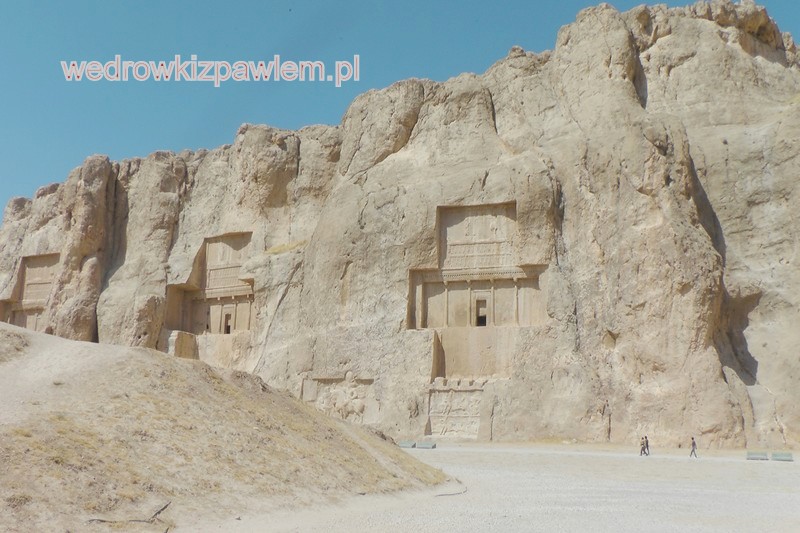 Nad ruinami miasta w zboczu góry znajdują się dwa grobowce: Artakserksesa II oraz III. Jest z nich doskonały widok na ruiny i całą okolicę. Widać że czasami w ruinach są organizowane imprezy światło i dźwięk. W okolicy Persepolis można jeszcze zwiedzić odległe o 80 km Pasargady (też dawna stolica z podobnego okresu) i znajdujące się przy nich pozostałości po super uroczystościach z okazji 2500-lecia Iranu, zorganizowane w 1971 r. przez ostatniego szacha Iranu Reza- Pahlawiego. Natomiast odległe tylko o 6-7 km są grobowce Naksze Rostam (Naqsh-e Rostam), i je postanowiłem też zwiedzić. Wstęp 0,17 USD. Pochowano tu królów perskich: Dariusza I i II, Artakserksesa (Artaxerxesa) I oraz Kserksesa (Xerxesa) I. Wejść do grobowców nie można, gdyż znajdują się wysoko w pionowym górskim zboczu. Wyraźne płaskorzeźby dodają uroku temu miejscu. Naprzeciw grobów ruinka o nieznanym przeznaczeniu. Jedną z wersji jest świątynia ognia. Załączone zdjęcia są z Naksze Rostam.