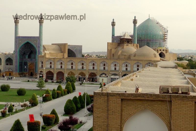Meczet Imama dawniej Wielki Meczet Królewski, wspaniale zdobiony z 4 –ma minaretami, oraz kopułą z podwójnym dachem (powoduje doskonała akustykę). Natomiast Meczet Szejha… różni się od innych brakiem dziedzińca wewnętrznego. Pamiątki pod arkadami większość oryginalne, dobrej jakości i mało chińskiej sztampy. Oryginalne pamiątki są wykonywane zwłaszcza w postaci różnych obrazów z motywami wykutymi z blachy. Szkoda, że nie mogę kupić- jeszcze za długo do końca tej wyprawy.