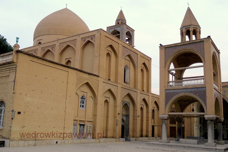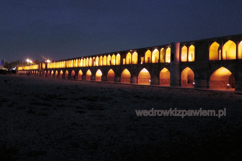 Madrasa Chahar Bag jest czynną szkoła koraniczną- nie zwiedziłem , gdyż dostępna jest wyłącznie w czwartki. Słynne mosty na rzeką Zajande (niestety brak wody) pochodzą z XVII wieku. Najbardziej znanym jest Most 33 Łuków: tylko ruch pieszy na 160 m. długości mostu, z kolumnadami po obu stronach. Wieczorem znaczny ruch spacerujących młodych ludzi (zwłaszcza mężczyzn). W pobliżu wzdłuż rzeki mieszczą się herbaciarnie. Istnieją jeszcze 3 inne mosty: Chubi, Khaju i nieco dalej Shahrestan. Dobrym pomysłem jest popołudniowy spacer pomiędzy mostami, a potem o zmroku dawka teiny w herbaciarni. Tak samo jest także na placu Imama Chomeiniego. W ciągu dnia panuje tam niewielki ruch, ale pod wieczór plac staje się również miejscem do odpoczynku i pikniku. W Dżulfie- dzielnicy ormiańskiej po drugiej stronie rzeki Zajande, w katedrze ormiańskiej Vank, bardzo bogate zdobienia. W tej chrześcijańskiej świątyni malowidłami naściennymi pokryto prawie każdy kawałek ściany. Ormianina pilnującego świątyni zagadnąłem: dlaczego w Armenii świątynie tej samej religii są prawie bez ozdób, a tutaj taka różnica? Odpowiedź była prosta: Ormianie na pracach wykonywanych w mieście bardzo się wzbogacili, i chcieli wykonać swoje miejsce kultu nie gorzej. Długo z nim plotkowałem po rosyjs