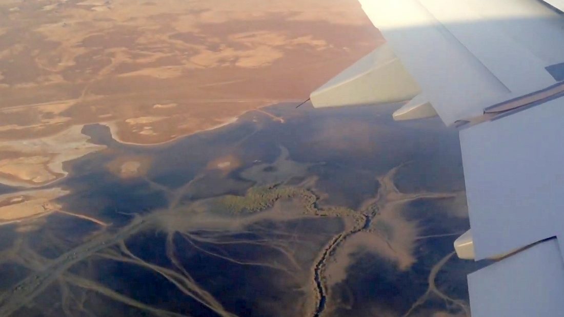 Po wylądowaniu Achmed prowadzi nas do swojego domu- przyjechał z nami jako kolejny „przewodnik”. Ten „dom” jest przyklejone do dużego głazu dwa mizerne pomieszczenia z kamieni i gałęzi, oraz „salon”. Tak nazwałem okrągły szałas z gęsto splecionych grubych gałęzi. Na dachu także gałęzie i na części jakaś szmata… Ale za to widok z otworu drzwiowego- sam zobacz niżej.