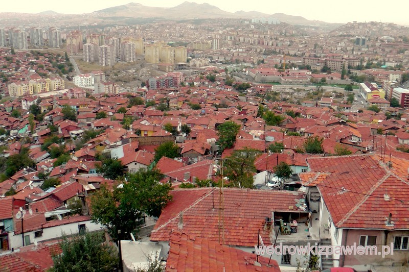 W końcu nie patrząc na mapę stoję przed Bramą Zamkową (Hisar Kapisi), z basztami z obu stron. Baszt zostało obecnie jeszcze 15. Po wejściu zaskoczyły mnie złym stanem technicznym budynki starego miasta wewnątrz twierdzy. Tam normalnie mieszkają ludzie, sklepiki, samochody, i niektóre domy rozpadające się ze starości. Za to z blanków twierdzy niesamowita panorama wokół na miasto. Wewnątrz znajduje się XII wieczny najstarszy meczet w Ankarze Allaettin (dostępny tylko z zewnątrz-zamknięty).