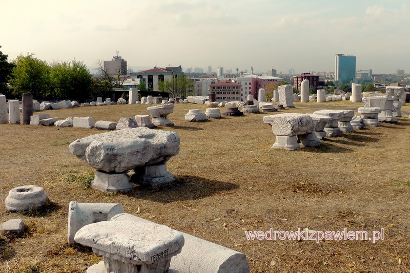 Zaczęło padać , więc wracam z piwkiem do hoteliku.Rano ciągle mży. Przed południem przejaśnia się więc idę do Roma Hamamlari (łaźnie rzymskie Karrakali z początku II wieku n. e.- wstęp 1,7 USD) Duży teren łaźni obejmował również szkołę zapasów tzw. palestrę. Dzisiaj niewiele pozostało, poza fundamentami tych ogrzewanych łaźni i podstawami kolumn. W pobliżu eksponowane są również rzymskie inskrypcje i pyty nagrobne z terenu Ankary. Nieco pod górkę z od łaźni znajdują się ruiny Świątyni Augusta i Romy. Przy ścianie świątyni z czasów rzymskich znajduje się XV wieczny Meczet Haci Beyram, wraz z grobowcem miejscowego XV wiecznego świętego Haci Beyram Veli,- założył filię bractwa derwiszy.