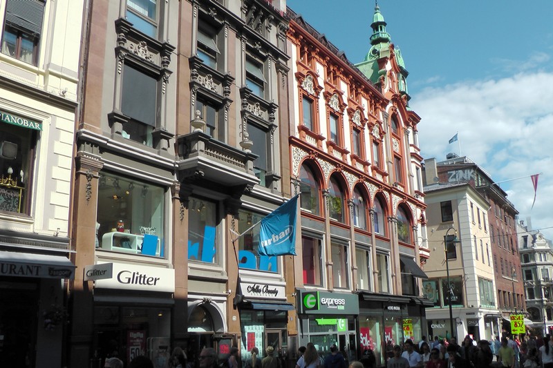 Na początku deptaków wyróżnia się XIX wieczny budynek parlamentu, a na końcu Katedra Oslo
