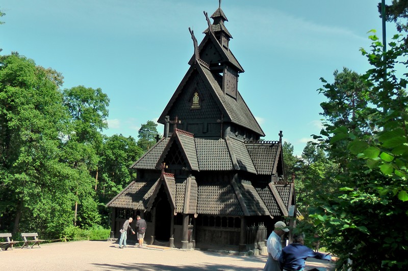 Mnie natomiast najbardziej się spodobało Muzeum Ludowe i Skansen na Wyspie Bygdoy (wstęp 75 PLN). Można dopłynąć statkiem z portu lub dostać się autobusami. Zgrupowano w jednym miejscu 155 różnych budynków, w tym bardzo ładną XII wieczną świątynię chrześcijańską Stave. Mnie bardzo przypominała świątynię Wang w Karpaczu.